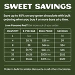 **Save up to 45% when you buy four or more Panama Red chocolates at a time. Price per chocolate lowers significantly as you increase the number of bars in your order. Similar discounts apply to all other chocolates.**